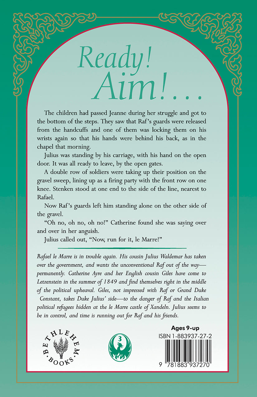 The adventures of Rafael le Marre and his friends continue in this third book of the Letzenstein Chronicles. Catherine Ayre and her cousin Giles come to Letzenstein in the summer of 1849. Raf is settled in Xandeln with a crowd of orphans—but Giles, at least, is not impressed with his unconventional ways. After a terrorist bombing in which the Grand Duke is thought to be killed, Julius Varenshalt tries to take political control. Catherine, and even Giles, fear for Raf's life—and indeed it has never more precariously hung in the balance.