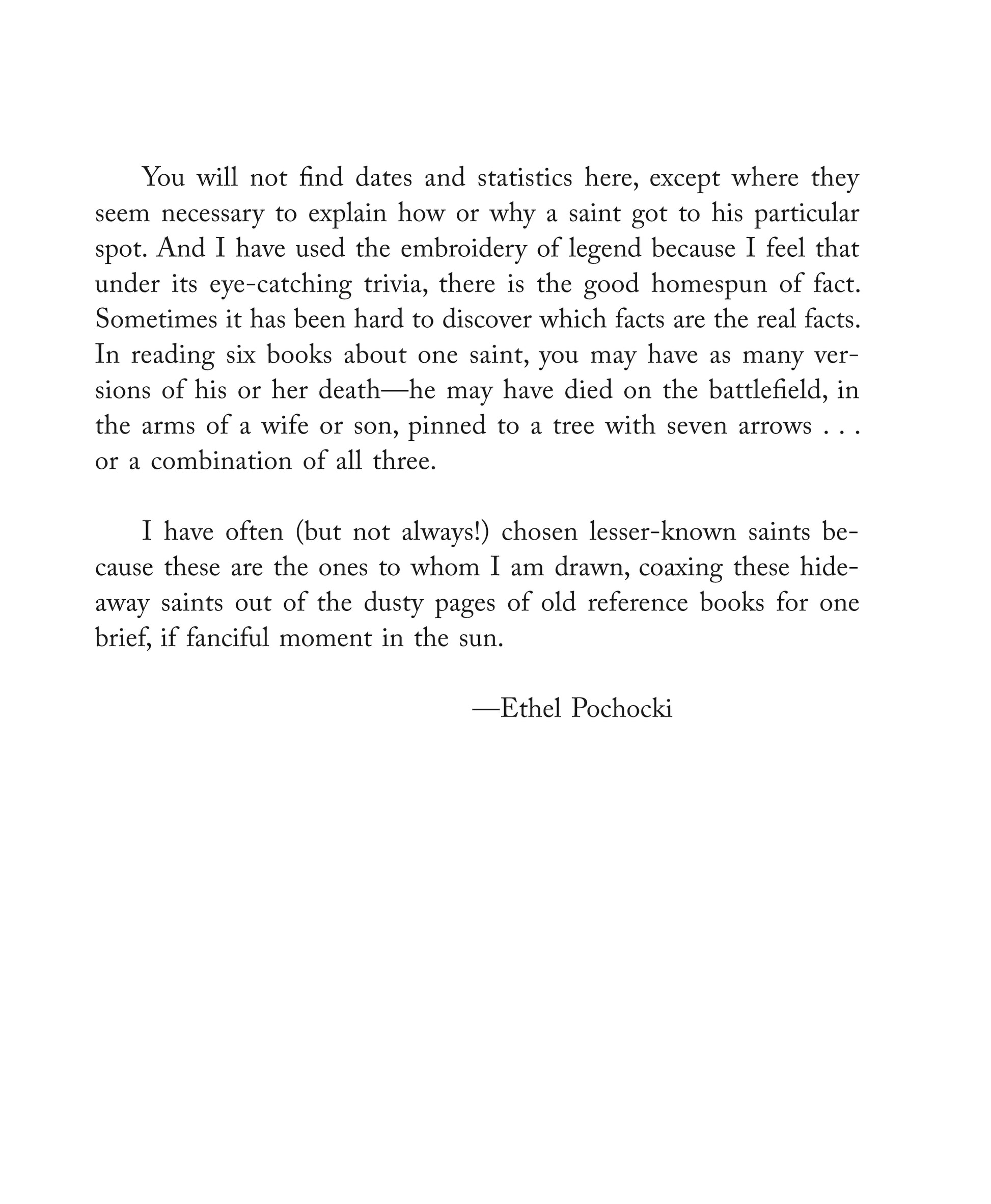 Ethel Pochocki, whimsically and unforgettably, presents a new set of heavenly friends to readers young and old in this third collection of Once Upon a Time Saints stories. Beginning in the dark of December, the start of the Church Year, there are stories and poems for each month, all bursting with saintly—not to mention angelic—deeds and happenings. Each tale or verse—whether of mystical apparitions in a tiny Irish village or of friars who float in the air or of entire countries single-handedly converted to Christianity—makes it quite plain that heaven doesn't keep to its place at all, but is happily determined to spill over into earthly life—here, there and...all around the year.