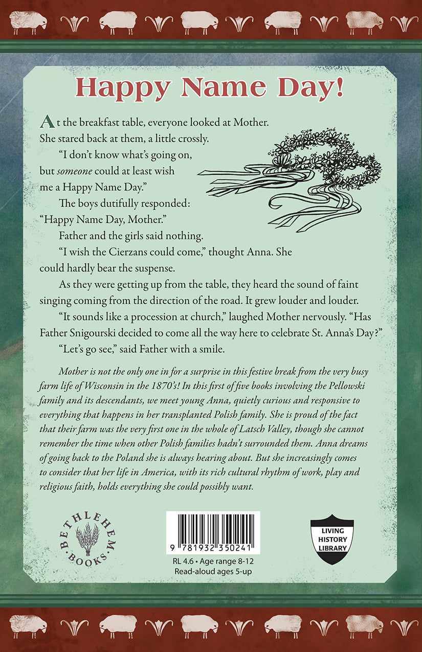 Six-year-old Anna Pellowski’s older siblings, Jacob, Franciszek, Barney, Mary and Pauline are exposed to English at school, but only Polish is spoken at home. The younger children—Anna, Julian, Anton barely know a word of their new country’s language, but then neither do many of their neighbors. When the family goes to town to celebrate the 100th birthday of the United States, the speaker gives his speech in a mix of German, Polish, Bohemian and Norwegian! Some years before, in the mid 1800’s, Anna’s mother, father and brother Baby Jacob had come from Poland to live in a tiny sod house in Western Wisconsin and establish the very first farm in the entire Latsch Valley. Now the growing family lives in a real house, with neighbors on every side, and the world for quietly curious Anna is filled with fascinating possibilities—as well as lots of hard work. Sometimes she dreams of going back to the Poland she is always hearing about, but increasingly she realizes that life in Latsch Valley, with its rich cultural rhythm of work, play and religious faith, holds everything she could possibly want.