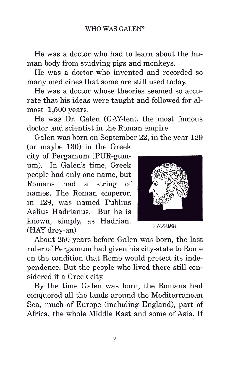 We know about Hippocrates, the Father of Medicine. But we owe nearly as much to Galen, a physician born in 129 A.D. at the height of the Roman Empire. Galen's acute diagnoses of patients, botanical wisdom, and studies of physiology were recorded in numerous books, handed down through the Middle Ages and Renaissance. Not least, Galen passed on the medical tradition of respect for life. In this fascinating biography for young people, Jeanne Bendick brings Galen's Roman world to life with the clarity, humor, and outstanding content we enjoyed in Archimedes and the Door of Science. An excellent addition to the home school and to libraries.
