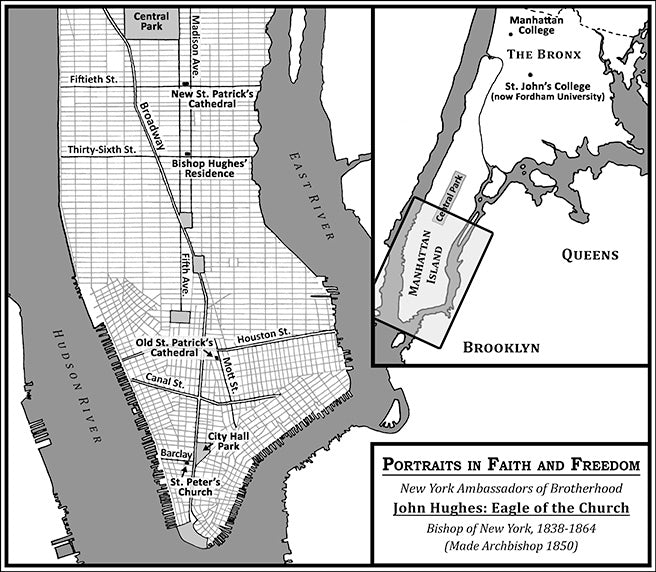 Fired with a dream of priesthood, John Hughes, a penniless Irish youth, arrives in Maryland in 1817 and soon finds work as a gardener at Mount St. Mary’s College and Seminary. When the Seminary president discovers how hard John is studying his Latin on the side, he allows John to start learning with the seminarians. Nine years later John is ordained a Catholic priest, a vocation that would have been prohibited by the English rulers in his native Ireland. “My blood is Irish,” he once stated, “my spirit is American, my soul is Catholic.”