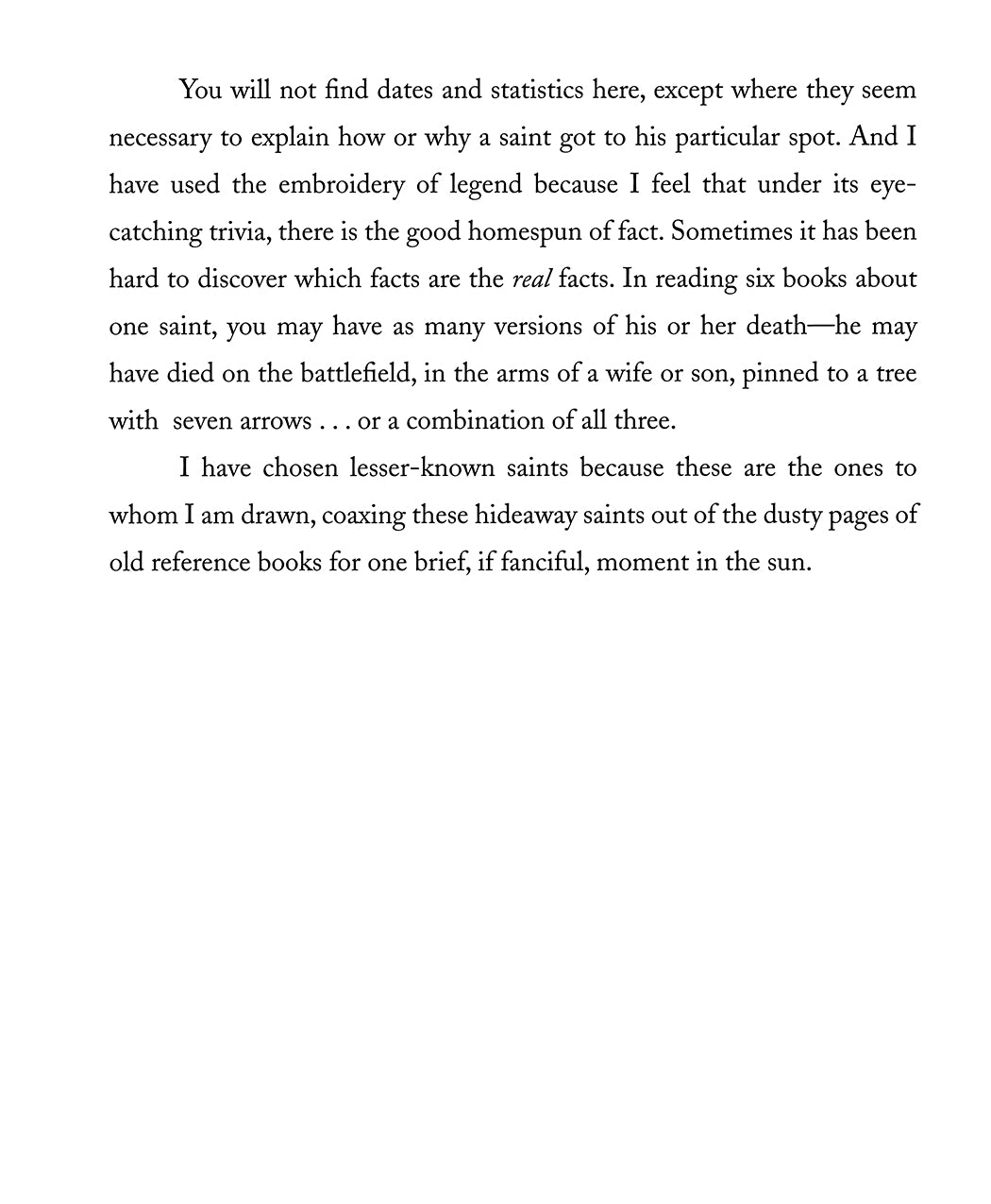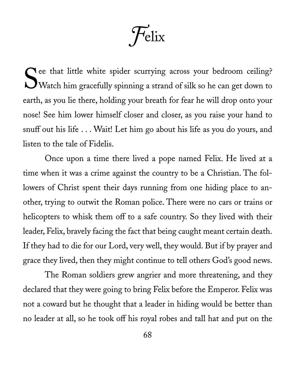 “These stories,” the author explains, “are meant to show human and lovable people whose mysterious passion for God led them into preposterous escapades.” With an eye on the taste of a child for concrete detail and no apologies for “the embroidery of legend,” each tale, in a style akin to fairy-tale, sets forth the unique qualities of a Genevieve, a Felix, a Dorothy, or Comgall—16 real saints brought unforgettably to our attention and admiration.