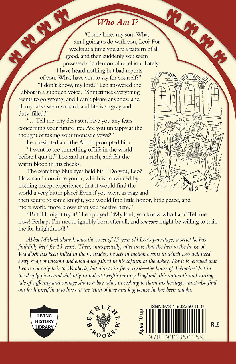 Fifteen-year-old Leo is an orphan being raised in an abbey in the days of King Richard the Lionhearted. He knows nothing of his parentage and has little hope for a future outside the familiar but sometimes restrictive monastery walls. Under the firm and loving hand of Abbot Michael, Leo has been well trained in piety, obedience and courtesy, and has begun to master a strong will and quick anger. Nevertheless, he is restless, longing to go out into the world for a time before renouncing it forever. Abbot Michael alone knows Leo’s story and family line and unexpectedly, when the heir to the house of Wardlock is killed in the Crusades, he sets in motion events in which Leo will need every scrap of wisdom and endurance gained in the years at the abbey. For he is not only heir to Wardlock, but also to its rival—the house of Trémoine! Vividly set in the deeply pious and violently turbulent twelfth-century England, this authentic and stirring tale of suffering and courage shows a boy who—to claim his heritage—must first see it transformed by the power of love and forgiveness.