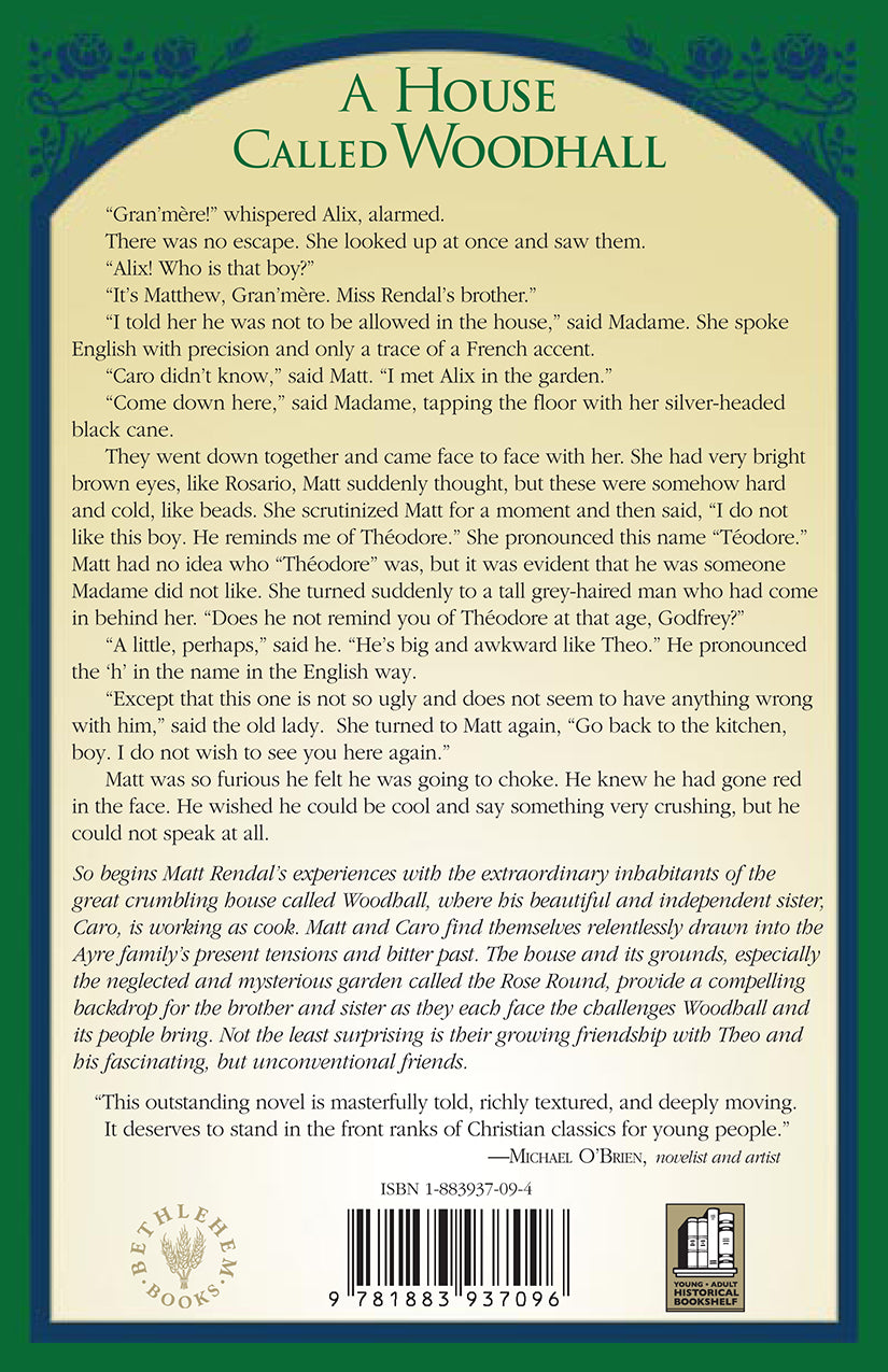 13-year old Matt is spending the holidays at the dilapidated Woodhall mansion where his spirited step-sister Caroline works as cook. In a faded rose garden Matt meets Alix, proud old Madame Ayre’s granddaughter, and is introduced to the tension-filled relationship between the embittered mother and her crippled son Theo. Matt must learn to judge character rather than appearances as Theo strives to turn the house into a home for orphans. Alix, through her willful foolishness, puts Theo’s life in danger and brings a dramatic confrontation: Christian hope versus fatal self-pride. A timeless book with a fast-paced plot and vivid characters.