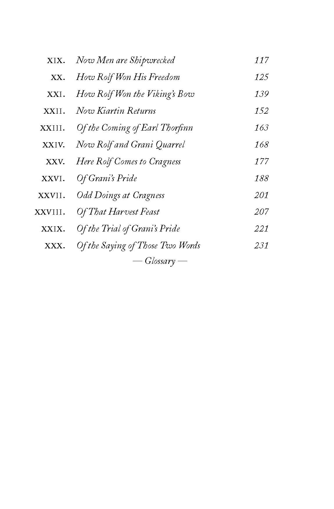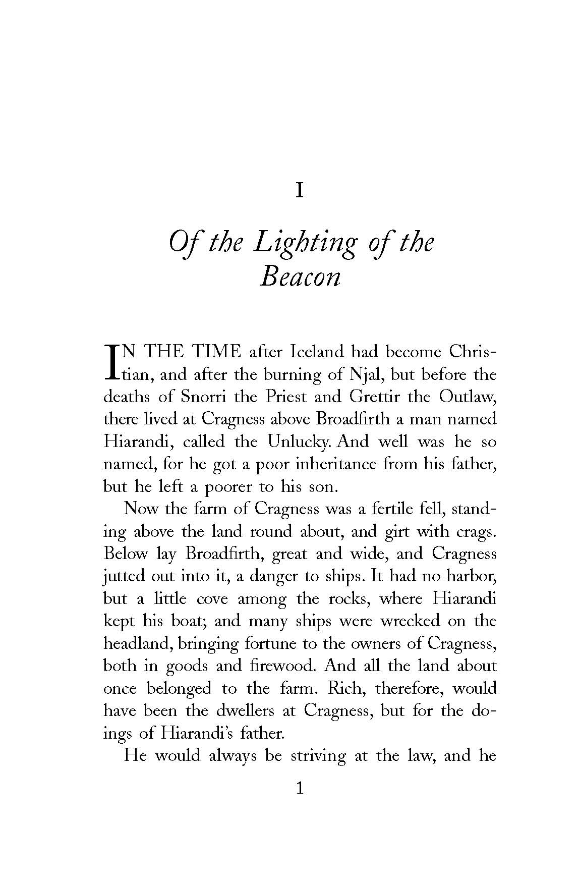 Rolf, son of Hiarandi the Unlucky, is a character who exemplifies the effect of Christ's teachings upon the Icelandic people during their heroic age. The book is set in Iceland in the days when Christianity has come to the island though the old customs still linger. Hiarandi, at the urging of his wife, does an unprecedented thing: he lights a signal fire on a dangerous point of his land, thereby challenging the accepted custom which places lucrative salvage at higher value than the saving of life. However, the life that is saved that night causes his own death and the unjust outlawing of his son Rolf. Rolf's response to this injustice creates a suspenseful, thought-provoking tale difficult to put down.