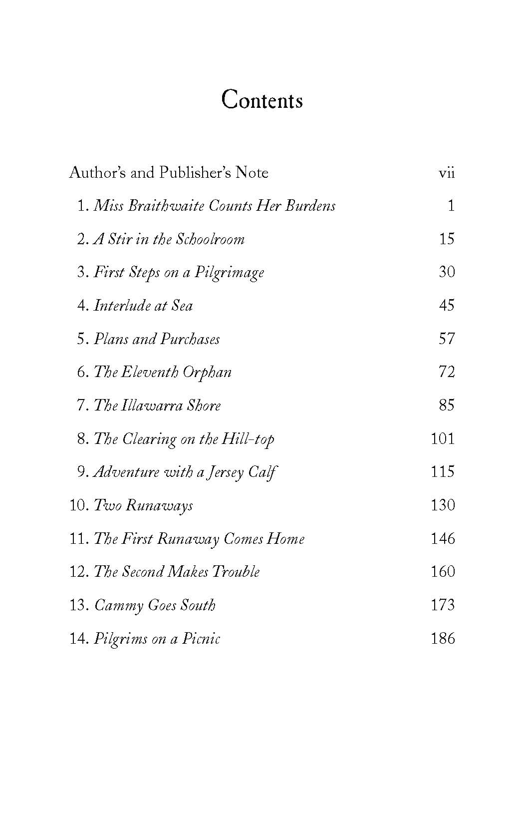 Miss Arabella Braithewaite of Switherby knows there is no future for the ten orphans—a remarkable mix of genteel and working class children—she has gathered together in these years of England’s grim factory growth in the early 1820s. Her plan, quite outrageous in the eyes of most, is to take the children to Australia to take up a land grant. Thus, one day the townsfolk gather to watch a line of departing “pilgrims” led by the fearless “Missabella.” On a new continent, and after a daunting ocean voyage, the challenges begin. To the orphans it becomes a life-giving adventure, even when serious unexpected threats must be overcome. Australian author Eleanor Spence, writing with keen personal insight, sketches each child and adult’s engagement with the new land and its people and with one another. From their courage we glimpse the futures of this unlikely band beginning to emerge with hope and personal dignity.